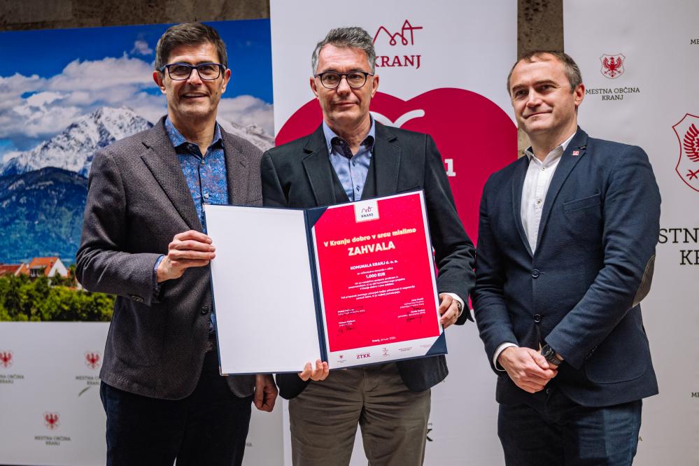 Z zaključnim dogodkom na Mestni občini Kranj se je uspešno končala že peta dobrodelna akcija V Kranju dobro v srcu mislimo. Ta poteka na pobudo župana Matjaža Rakovca, njen glavni namen pa je zbiranje sredstev za družine in posameznike v stiski. Vanjo so se s prispevki vključili gospodarstveniki, posamezniki in vrsta podjetij – med njimi tudi Komunala Kranj d.o.o.