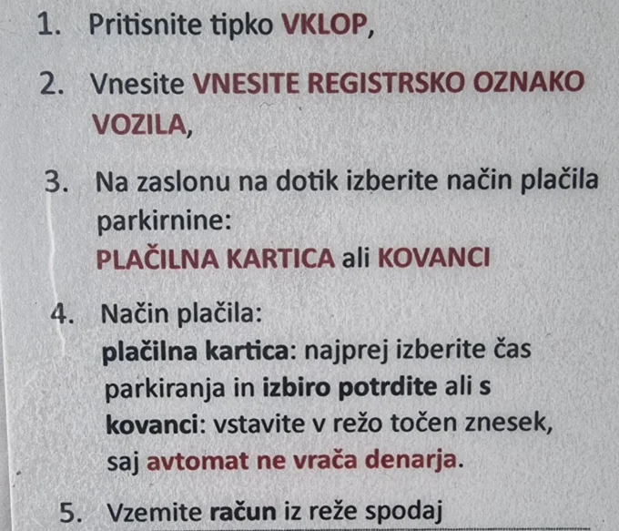 Foto: Nameščena navodila na parkomatih, kjer je potreben vnos registrske oznake vozila. (arhiv Komunale Kranj)